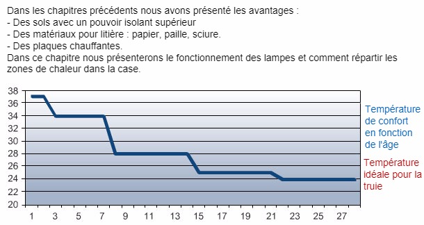 Utilisation des lampes et répartition des zones de chaleur en maternité.