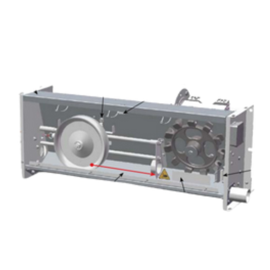 Reparto de alimento con discos en cadena capaz de suministrar hasta 22,7 kg (50 lb) por minuto.