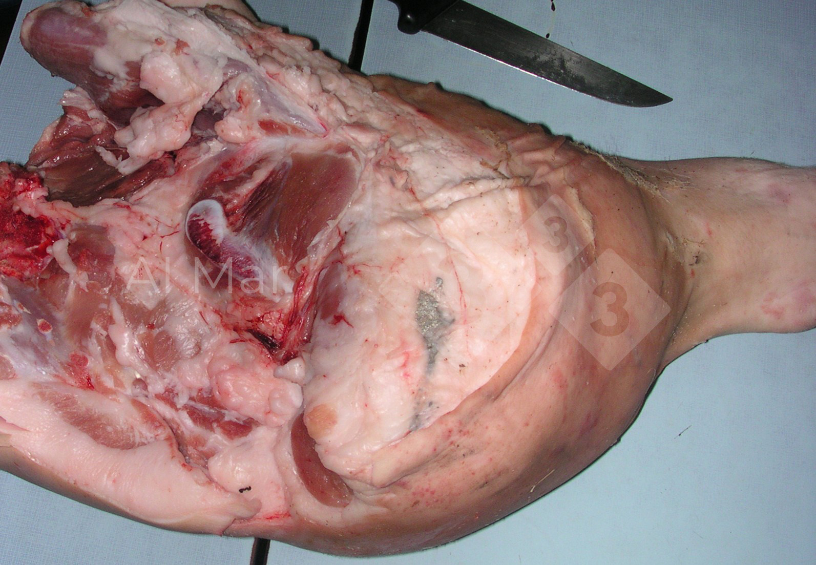 Quelle est la cause de cette lésion sur un porc de 12 semaines venant de mourir ?
