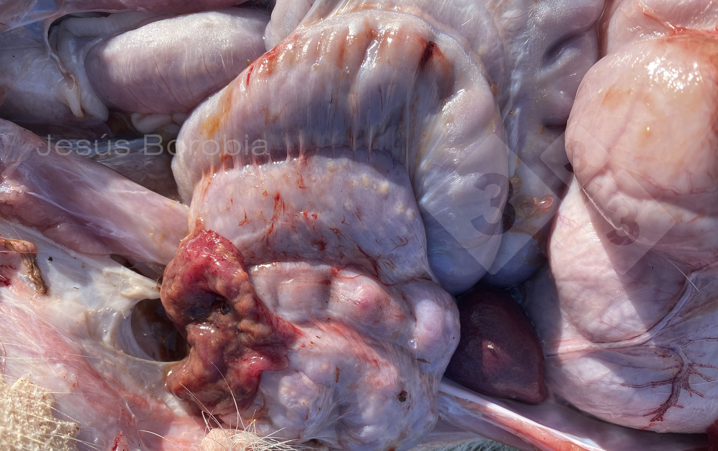 Plusieurs porcelets sevrés présentent des signes cliniques de diarrhée et une perte de poids à partir de l’âge de 8 semaines. À la nécropsie, on observe une diarrhée mucohémorragique ainsi qu’une hypertrophie des plaques de Peyer de la muqueuse intestinal