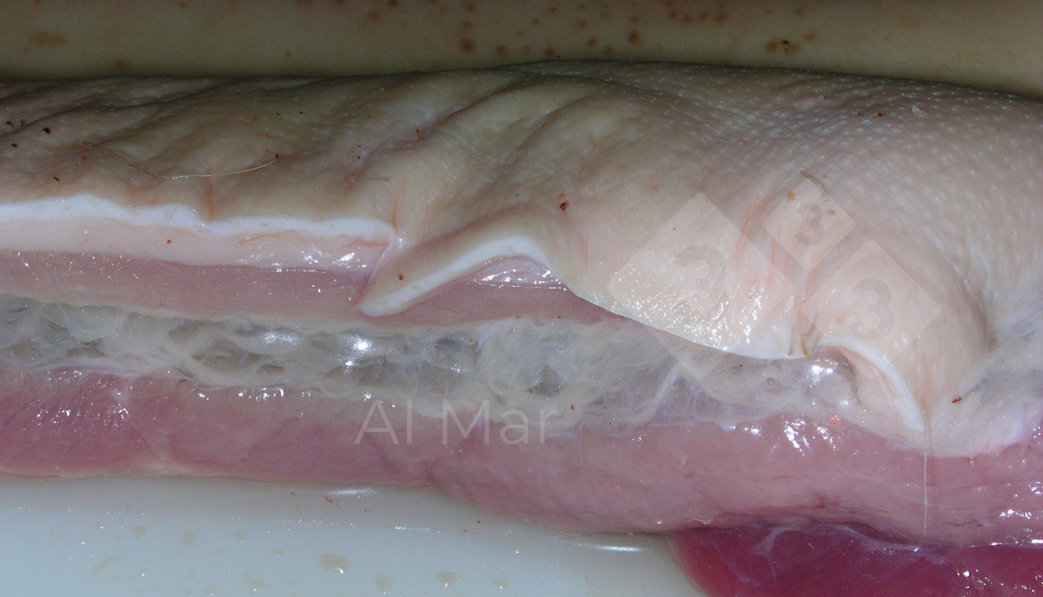 On constate une augmentation de la mortalité par mort subite chez les porcs d'engraissement. Les porcs post mortem présentent des anses intestinales distendues par des gaz, une couleur pourpre intense et sont remplis de liquide contenant beaucoup de sang.