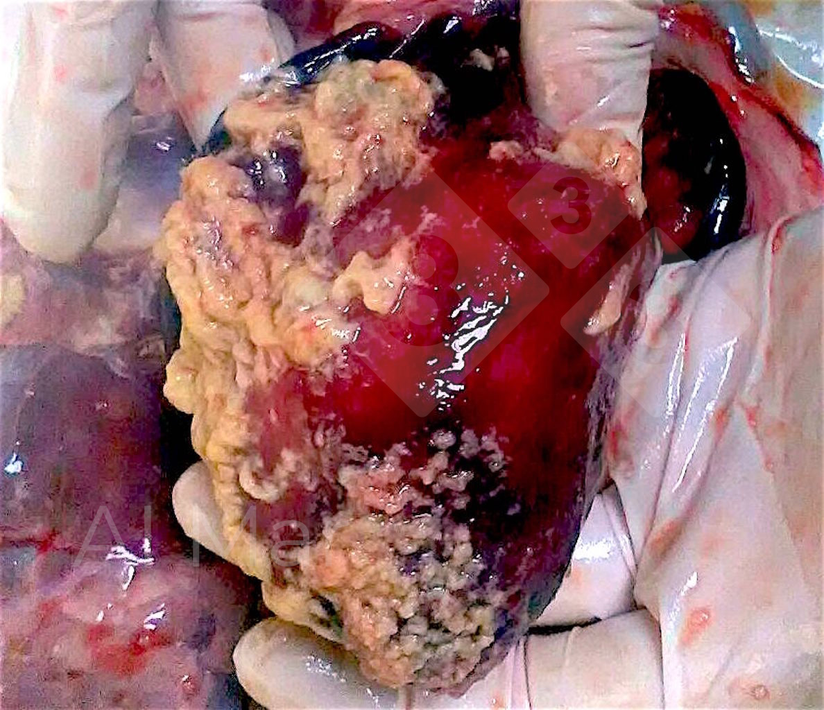 On constate une augmentation de la mortalité par mort subite chez les porcs d'engraissement. Les porcs post mortem présentent des anses intestinales distendues par des gaz, une couleur pourpre intense et sont remplis de liquide contenant beaucoup de sang.
