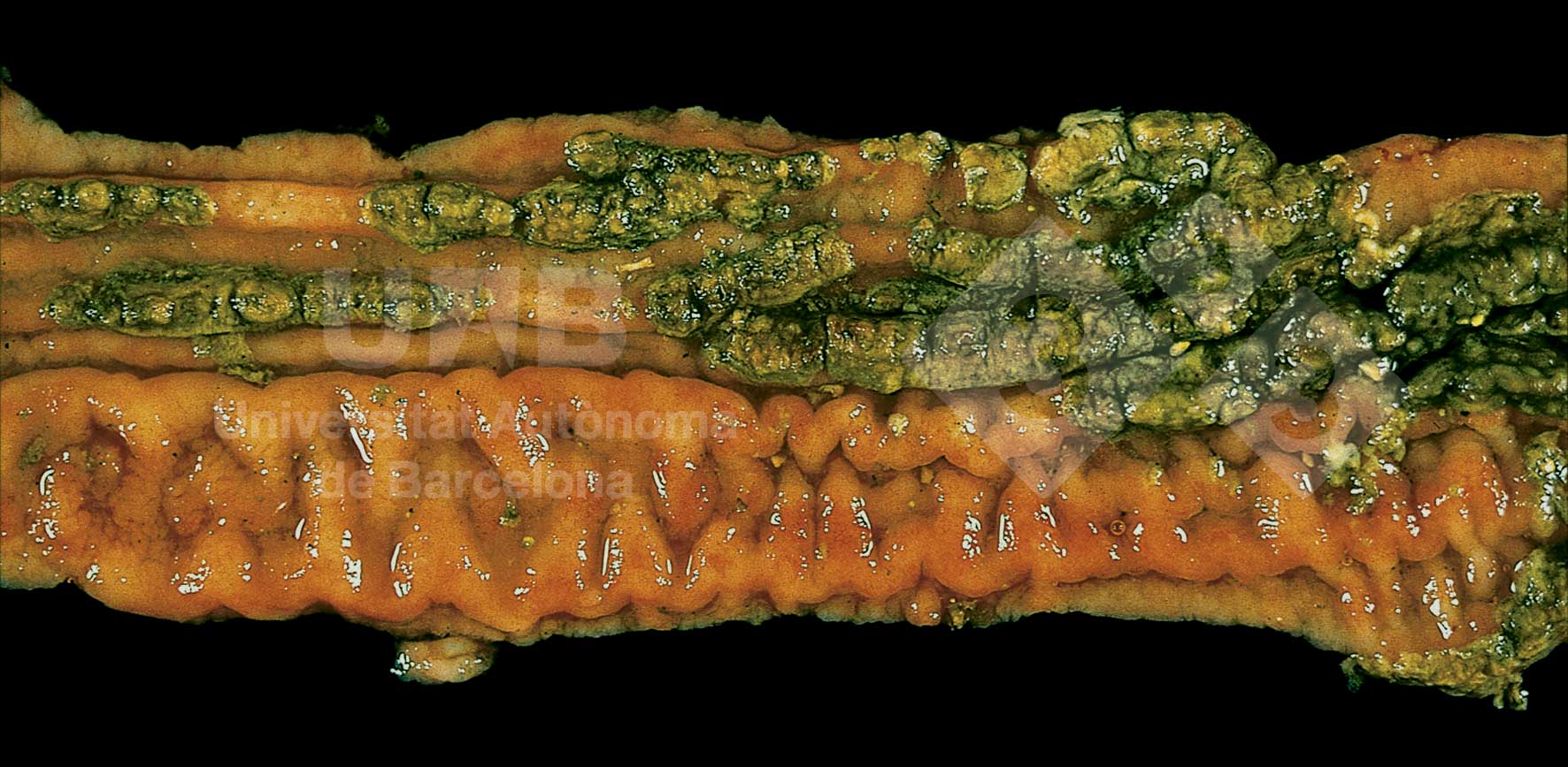 On constate une augmentation de la mortalité par mort subite chez les porcs d'engraissement. Les porcs post mortem présentent des anses intestinales distendues par des gaz, une couleur pourpre intense et sont remplis de liquide contenant beaucoup de sang.