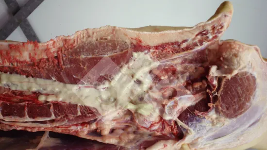 En coupant la carcasse en deux, on trouve un abcès dans la colonne vertébrale, qui se rompt. Quelle peut en être l'origine?