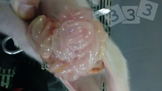 Ganglions lymphatiques mésentériques et inguinaux augmentés de taille et hémorragiques lors de l'autopsie d'un porcelet sevré. Cause possible ?