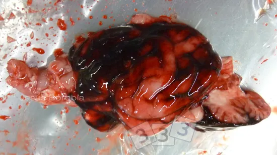 À l'autopsie, nous observons ce tableau lésionnel. Quelle pourrait en être la cause ?