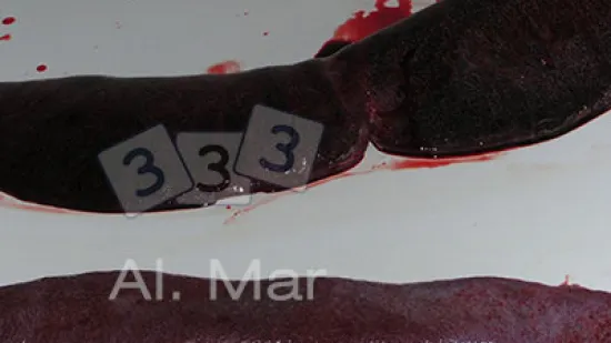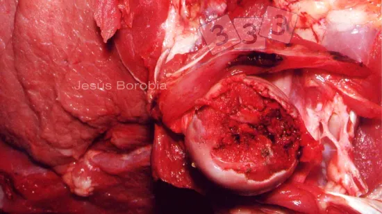 Ulcère dans le diverticule préputial d'un verrat adulte sacrificé pourr une hémorragie persistante dans l'éjaculat. Quel est la cause la plus probable?