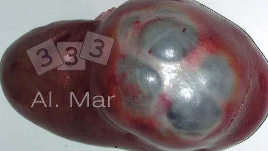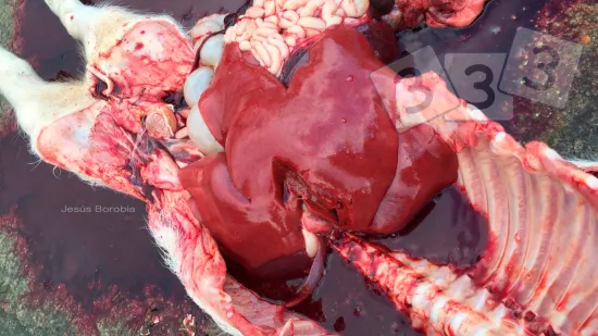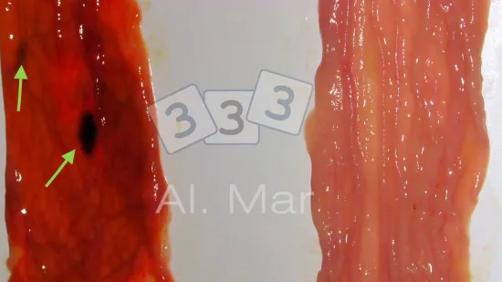 Après une augmentation des morts subites en croissance et en finition, des lésions de ce type sont détectées Quelle est la cause la plus probable?