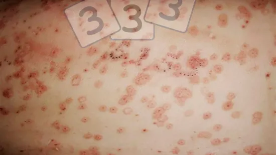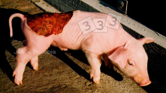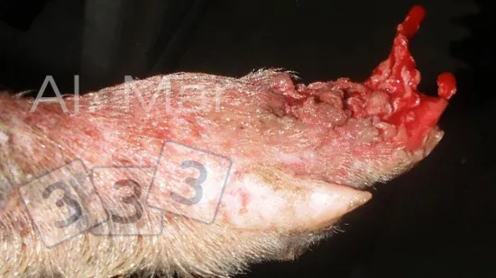 Ce porc de 6 semaines a des lésions cutanées non prurigineuses. Que cela peut-il être ?