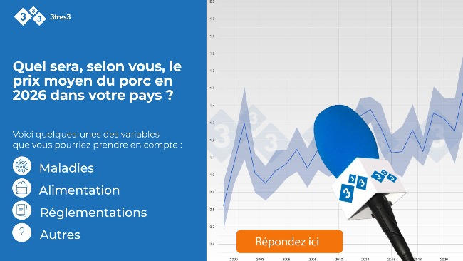 Comme chaque début d'année, nous vous interrogeons à nouveau sur le prix moyen du porc dans votre pays. Nous publierons bientôt les résultats de vos prédictions pour 2025, mais nous souhaitons maintenant savoir comment vous envisagez 2026, qui vient de commencer...