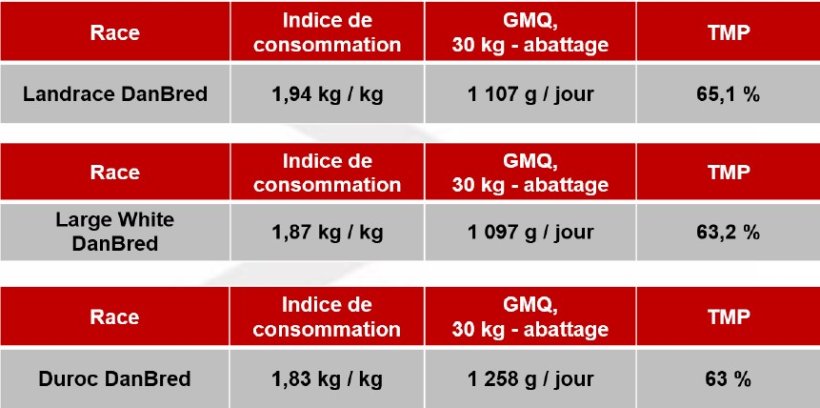 L’indice de consommation représente 40 % de l’objectif de sélection des lignées femelles Landrace et Large White DanBred, et même 45 % de la lignée terminale Duroc DanBred.