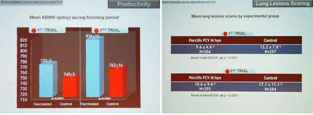 La seconde partie de la session a été dédiée entièrement à l’explication des caractéristiques de Porcilis® PCV Mhyo. Pour commencer, Ruud Segers, responsable de biologie porcine au sein de MSD, a expliqué dans le détail le chemin parcouru avant de réussir à lancer sur le marché Porcilis® PCV M hyo, y compris les résultats de laboratoire de sécurité et efficacité du produit.