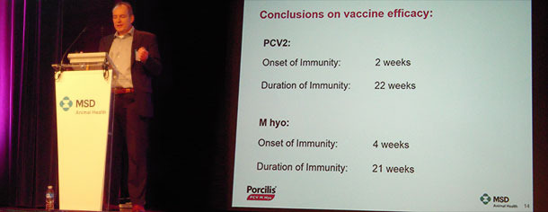 Sous le titre “Porcilis® PCV M hyo - It’s easy. It works” Michael Campbell, directeur marketing de Respig®, a débuté sa présentation, au travers de laquelle il a souligné les raisons d’utiliser ce vaccin.