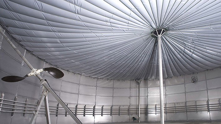 Dans la nouvelle usine WELTEC de Veria, une partie de ces ressources inutilisées est maintenant exploitée énergétiquement. Pour la fermentation, on utilise principalement du fumier bovin et des matières résiduelles provenant de la transformation de la viande. En plus de ces substrats, le digesteur en acier inoxydable de 4 903 mètres cubes est également alimenté en eaux usées et en graisses. Les matières entrantes proviennent des fermes et de l‘abattoir de l‘exploitant ainsi que des agriculteurs des environs.