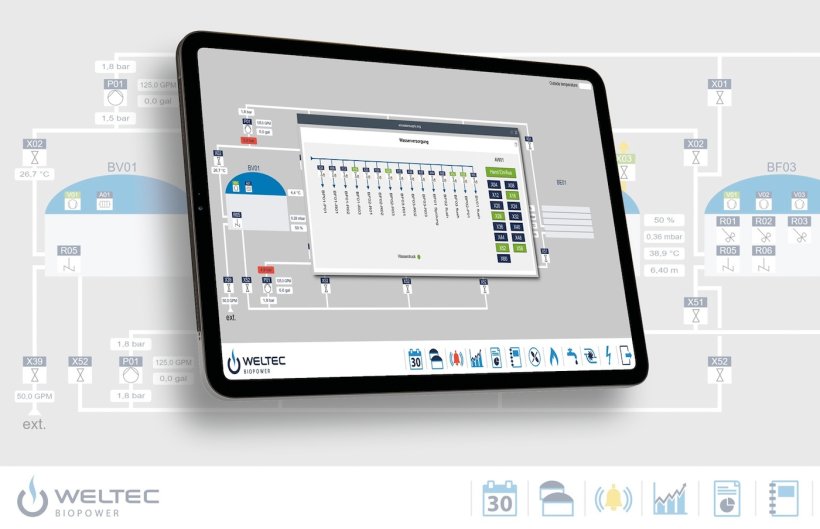 Le contrôle-commande de WELTEC BIOPOWER a reçu une mise à jour générale : celle-ci comprend de nouvelles fonctionnalités pour l'optimisation des processus ainsi qu'une interface utilisateur qui permet une vue d'ensemble rapide et complète de l'installation globale grâce à une iconographie conforme aux dernières évolutions et à la clarté de la représentation. Les parties de la commande appelées jusqu'à présent LoMos et CeMos seront désormais regroupées sous le nouveau nom de WB Control. WB Control peut être utilisé aussi bien pour les petites installations industrielles que pour les installations complexes.