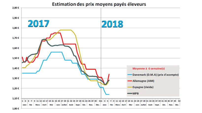 Le manque de porcs charcutiers a provoqué mercredi dernier une hausse inattendue de 7 centimes en Allemagne. Il semblerait que depuis quelques mois, des porcelets danois et hollandais, traditionnellement exportés vers l’Allemagne, aient pris le chemin, soit de la Pologne, soit de l’Espagne. La crainte de voir apparaître la Peste Porcine Africaine sur le territoire a‐t‐elle amené certains éleveurs allemands à renoncer à la mise en place de porcelets dans leurs porcheries ? Ou est‐ce la mauvaise conjoncture de ces derniers mois ? Quelle que soit la motivation des producteurs, le résultat est un manque important d’offres ce début février alors que la forte demande des abattoirs ne parvient plus à être satisfaite. Dans certaines régions on signale même un peu de rétention de la part des éleveurs dans l’attente de nouvelles hausses. Sur le marché de la viande, la demande est soutenue pour les épaules, les échines et les poitrines et des actions de promotions dans les points de ventes assurent l’écoulement des marchandises. La baisse de l’offre se traduit aussi par des baisses régulières des poids depuis plusieurs semaines tandis que les analystes font remarquer une baisse sensible de l’activité de l’ordre de 3 % depuis le mois d’octobre comparé à la même période il y a un an. Si la forte hausse allemande sera difficile à être répercutée sur le marché de la viande, elle a entraîné tous les prix production vers le haut à des degrés divers.