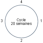 | Semaine | 1 | 2 | 3 | 4 | 5 | 6 | 7 | 8 | 9 | 10 | 11 | 12 | 13 | 14 | 15 | 16 | 17 | 18 | 19 | 20 |