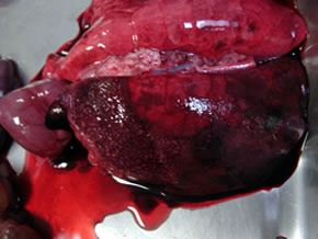 (cf. photos) : pleurésie, abcès sur les 2 poumons - cœur : RAS. |