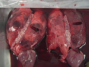 Des prélèvements de poumons sont réalisés à l'abattoir et Actinobacillus pleuropneumoniae (B1S2) sensible à l'association triméthoprime/sulfamides est isolé.