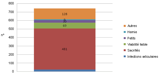 Avant la mort, les truies étaient en décubitus, présentaient de la léthargie, de l'hyperesthésie et de l'anorexie.