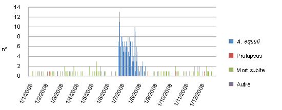 Durant l'été 2008, une sévère mortalité de truies s'est produite, environ 300 truies sont mortes sur une période de 8 semaines. L'élevage est passé d'un taux de mortalité de 1,8% à une mortalité de 6,8% le 15 juillet 2008 en plein épisode de mortalité. La mortalité sur les porcelets allaitants a été aussi élevée pendant cette période. L'élevage est parti d'une mortalité avant sevrage jusqu'au mois de juin de 11,95% atteignant des pics de 16 % en juillet pendant la crise du cas clinique.