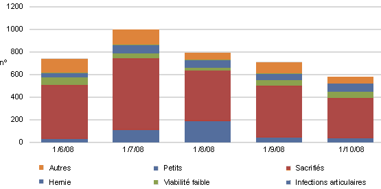 Graphique 4: Mortalité des porcelets allaitants de juin à Octobre 2008