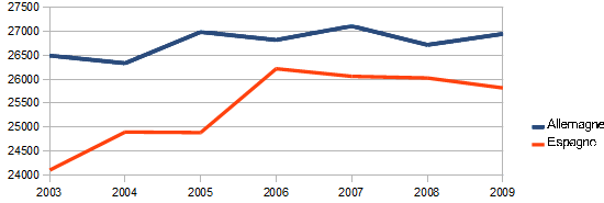 | Evolution des effectifs entre l'Allemagne et l'Espagne |
