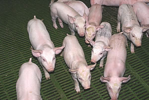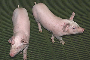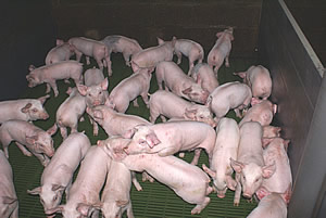 - Bâtiment sur caillebotis, truies bloquées avec une bonne luminosité.