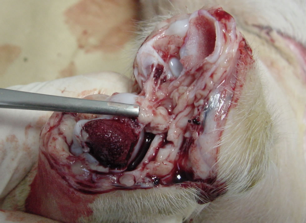 4 porcelets traités à l'amoxicilline (2 en maternité et 2 en post-sevrage) sont autopsiés et des cultures bactériennes sont réalisées à partir des articulations.