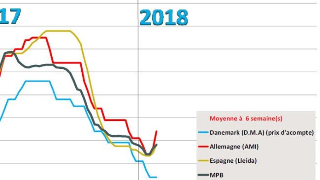 La baisse allemande était annoncée depuis la fin de l’année 2017, les différentes conjectures autour de son ampleur faisaient trembler tous les marchés. La baisse officielle de 3 centimes reste pour l’instant mesurée, elle intervient à la veille de la « semaine verte », le grand salon international de l’agriculture qui se tient à Berlin du 19 au 28 janvier. Toutefois, du côté de la branche abattoir, la position prise par les éleveurs est jugée provocatrice et certains des plus gros abattoirs du pays (Tönnies, Danish Crown, Westfleish) ont déjà annoncé de possibles « prix maisons » allant jusqu’à ‐ 7 centimes sous la précédente référence. Le commerce allemand est jugé faible avec une abondance d’offre de porcs dont les poids atteignent des records. Plus inquiétant encore est la menace de l’apparition de la Peste Porcine Africaine sur le territoire, mise en avant depuis plusieurs jours par les médias allemands. Le Ministère de l’Agriculture a toutefois déclaré que le virus était à quelques centaines de kilomètres de la frontière. Les éleveurs sont en état d’alerte et ceci depuis plusieurs mois. Dans ce contexte, les abattoirs pourraient ne pas avoir recours systématiquement à la congélation, pratique habituelle en janvier lorsque le commerce est au ralenti, car si la PPA se déclare, il serait alors difficile de commercialiser cette viande congelée à l’export. La solution serait donc de vendre cette viande en frais à faible coût. Sur le marché des pièces, des concessions de prix sont faites sur la plupart des coupes, seules les échines trouvent facilement acquéreurs pour les futurs BBQ du printemps. La tendance baissière allemande s’est propagée sur les marchés alentours puisque la Belgique et le Danemark ont revu leur cotation à la baisse de 4 cents, l’Autriche de 3 cents.