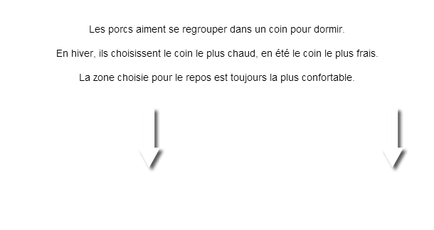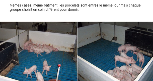 3 commentairesLes porcs aiment se regrouper dans un coin pour dormir. En hiver, ils choisissent le coin le plus chaud, en été le coin le plus frais.