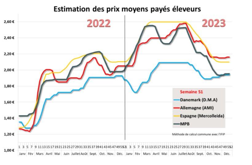 Les entreprises ont poursuivi leur activité jusqu’au bout pour répondre aux besoins élevés de certains marchés en fort déficit de viande, notamment en Europe de l’est et centrale. L’offre s’est faite aussi plus importante en raison d’anticipations d’annonces observées avant le ralentissement attendu la dernière semaine 2023. Les marchés sont donc équilibrés et les cotations ont été majoritairement reconduites. Pour cette nouvelle semaine une pause est observée sur de nombreuses places de cotation en Europe suivant l’exemple de l’Allemagne et de l’Espagne.