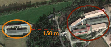 L'élevage travaille en bandes hebdomadaires et élève les porcelets (Duroc x Landrace x Pietrain) jusqu’à 20 kg, de sorte que la phase 1 et la phase 2 soient distantes de 150 mètres.