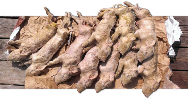 Malgré ma recommandation d'un feedback standard d'un intestin de porcelet pour 10 truies, ils ont seulement utilisé un pour 100 truies. Au lieu d'effectuer le feedback pendant 3 jours consécutifs, ils le donnèrent seulement un jour et ils observèrent si quelques truies ou un secteur de l'élevage devenait malades. On a effectué à nouveau le feedback 3 jours après à ces animaux qui n'ont pas répndu.