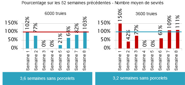 L'élevage de 6000 truies a effectué le feedback le lundi matin 6 mai. Toutes les truies de l'unité ont été malades (vomissements et diarrhée). Les porcelets sevrés ont parfaitement récupéré pendant la première semaine en post-sevrage en 5 à 7 jours. La semaine suivante, les sevrés avaient un poids moyen de 4.76 kg face contre notre moyenne de 6.12 kg et présentaient des problèmes au sevrage.