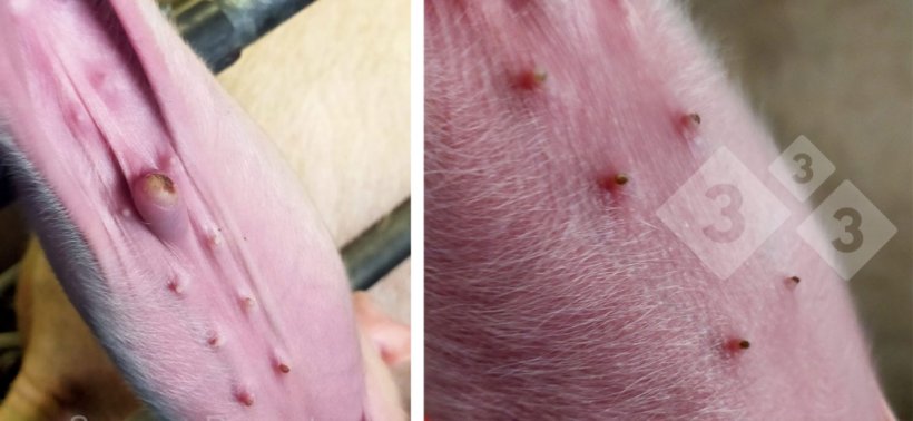 Les lésions compromettent le bien-être de l'animal et le syndrome a été mis en relation avec la qualité de la truie. Des signes de SINS peuvent également être observés au sevrage et à l'engraissement. (Reiner et al., 2020).