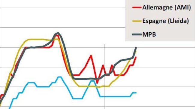 Depuis la fin janvier jusqu'à aujourd'hui, le cours de Mercolleida a repris de 6,60 centimes, passant de 1,132 à 1,198 € / kg vif. Semaine après semaine, on grappille centime après centime sur un parcours à la hausse ferme, contenu mais constant. On pourrait dire que le prix espagnol chevauche un puissant moteur diesel qui le pousse inexorablement vers le haut.