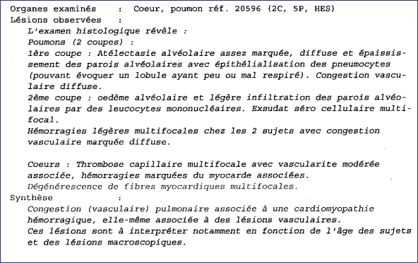 L’histologie sur le cœur et les poumons a révélé :
