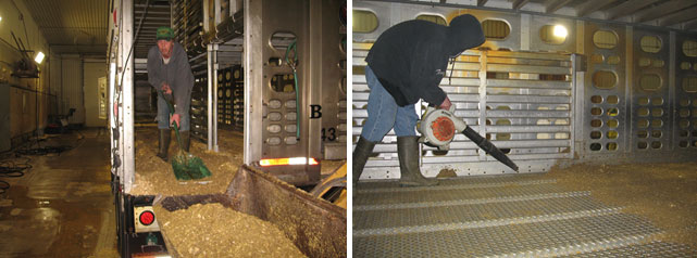 Si de la litière doit être utilisée pour un groupe déterminé d'animaux, une SOP spécifique doit être développée et écrite pour acheter du matériel biologiquement sûr (contrôle qualité entrant - IQC), et pour un stockage et une manipulation biosécures au sein de l'installation de l'unité de lavage des camions, avant de placer ce matériau dans la remorque déjà propre et désinfectée.