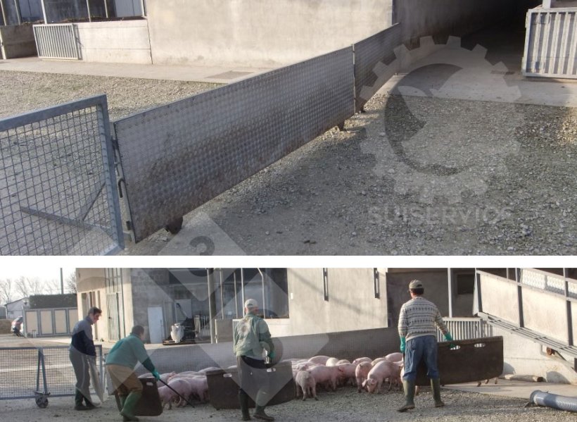 Lorsque les mouvements ont lieu à l'intérieur d'un bâtiment, les couloirs permettent de diriger les animaux, alors que lorsque les mouvements ont lieu entre deux bâtiments différents, il est nécessaire de diriger les porcs à l'aide de murs ou de barrières spécialement conçus à cet effet.