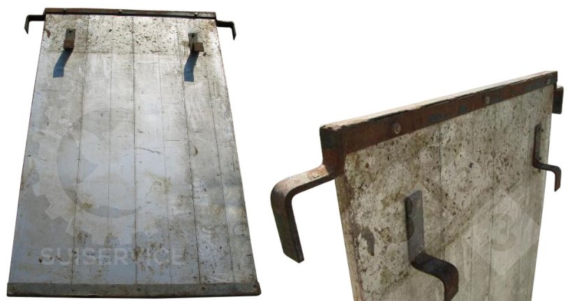 L'éleveur a acheté à bas prix de vieux panneaux latéraux de camion en aluminium, c'est-à-dire légers et résistants aux porcs les plus forts. Il a mesuré la hauteur des murs et la largeur du couloir et a construit des panneaux qui sont 30 cm plus hauts que les murs et légèrement plus étroits que les couloirs ; sur le dessus, il a fixé deux crochets de la largeur des murs du couloir et, sur l'un des deux côtés, il a ajouté deux autres crochets pour ranger les panneaux lorsqu'ils ne sont pas utilisés.