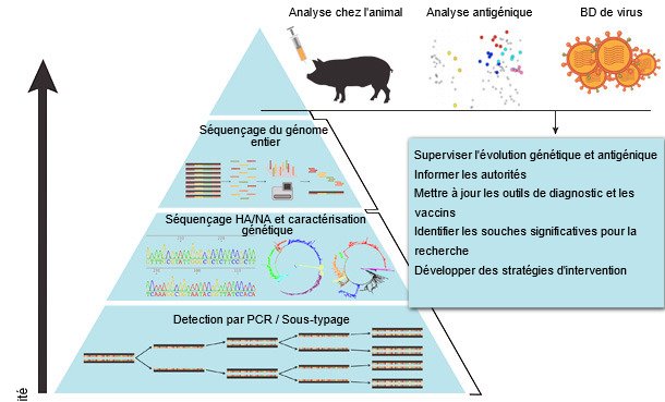 Figure 1. Méthode systématique de surveillance du virus de l'influenza A dans le porcin (basé sur Ampofo et al., 2015).