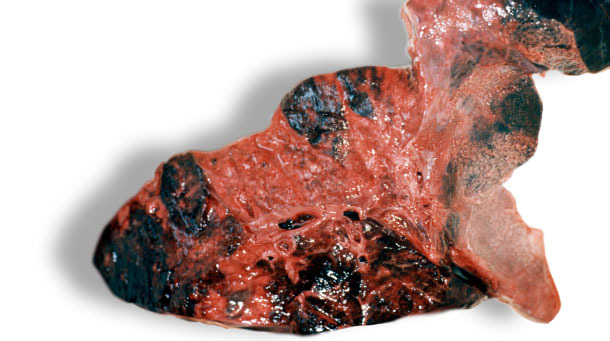 Figure 2 Poumons atteints par App aigu avec de la pleurésie fibrineuse typique.