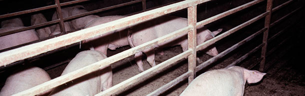 Le porc mort restant avait une torsion intestinale. Les porcs de la salle où sont apparus les cadavres présentaient de la toux et quelques-uns avaient une température rectale supérieure à 42°C avec une dépression sévère et de la léthargie (figure 6). Une vingtaine était couchée avec une importante difficulté respiratoire.