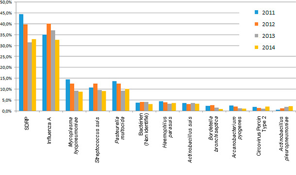 Mycoplasma hyopneumoniae (M.hyo) est l’agent causal de la pneumonie enzootique chez les porcs et le co-agent le plus souvent isolé du complexe respiratoire porcin (CRP). Les méthodes modernes de production multi-sites et « tout plein, tout vide » avec le développement et la disponibilité des vaccins bactériens cellulaires de mycoplasme entiers ont diminué significativement l’impact de la pneumonie par mycoplasme dans les dernières décennies. La pneumonie enzootique est principalement une maladie respiratoire chronique des porcs d’engraissement et elle se manifeste par une toux non productive et persistante, un retard du taux de croissance, un indice de consommation déficient, une forte morbidité et une faible mortalité. Cependant, depuis l’apparition du SDRP et plus tard du PCV-2b, le CRP et son agent primaire M. hyo sont devenus, économiquement et cliniquement une cause importante de mortalité chez les porcs d’engraissement. L’expérience de terrain nous montre aussi que les vaccins peuvent avoir perdu une partie de leurs avantages protecteurs sur les dernières vingt années, ce qui pourrait indiquer une évolution de la pathogénicité du mycoplasme et/ou l’influence des nouveaux et anciens co-pathogènes qui ont aussi évolué.
