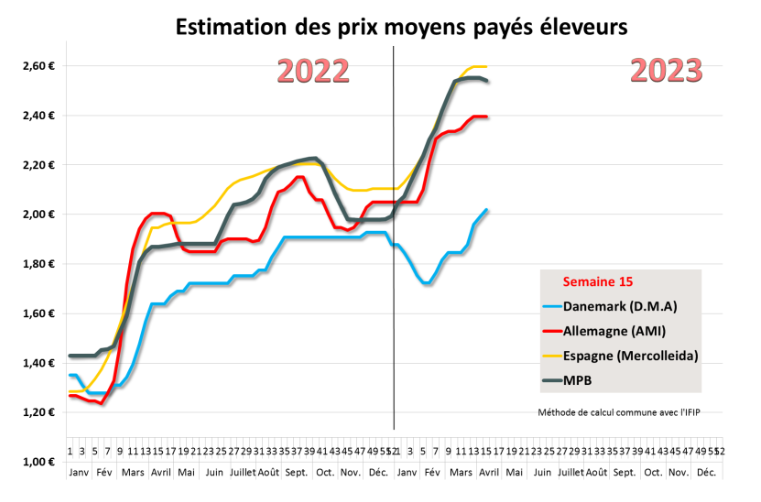Le prix d’acompte publié par Danis Crown au Danemark est en hausse de 3 cents d’euros, ce qui représente la cinquième hausse consécutive pour un total de 20 cents d’euro. Cette tendance permet de réduire le grand écart avec les autres principales références européennes et reflète une reprise du commerce vers les pays tiers où les viandes danoises sont mieux placées que ses partenaires européennes. A noter également, l’effondrement des abattages au Danemark de l’ordre de 16% sur le premier trimestre 2023.