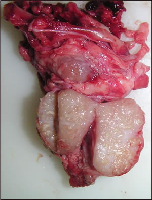 Synthèse : lésions d'actinomycose. Absence de lésion de tuberculose.
