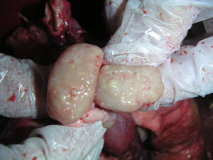 La constatation à l'abattoir de lésions d'abcès miliaires au niveau des ganglions est souvent alarmante. La démarche du vétérinaire est d'entamer aussitôt des recherches complémentaires car attendre l'infirmation ou la confirmation de tuberculose par la méthode officielle est bien trop longue et trop "stressante" pour l'éleveur.
