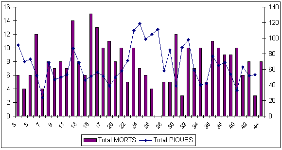 Graphique n°2 : Mortalités et injections sur la phase sevrage à sevrage + 3 semaines