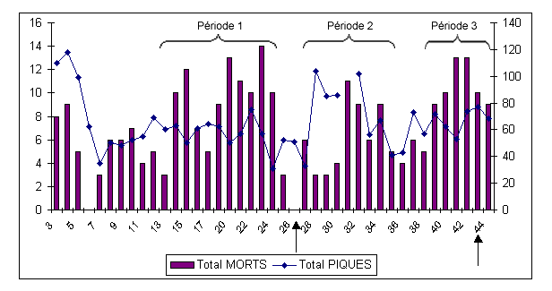 Période 1 : elle correspond à un passage d'épidermite avec une augmentation de la mortalité.